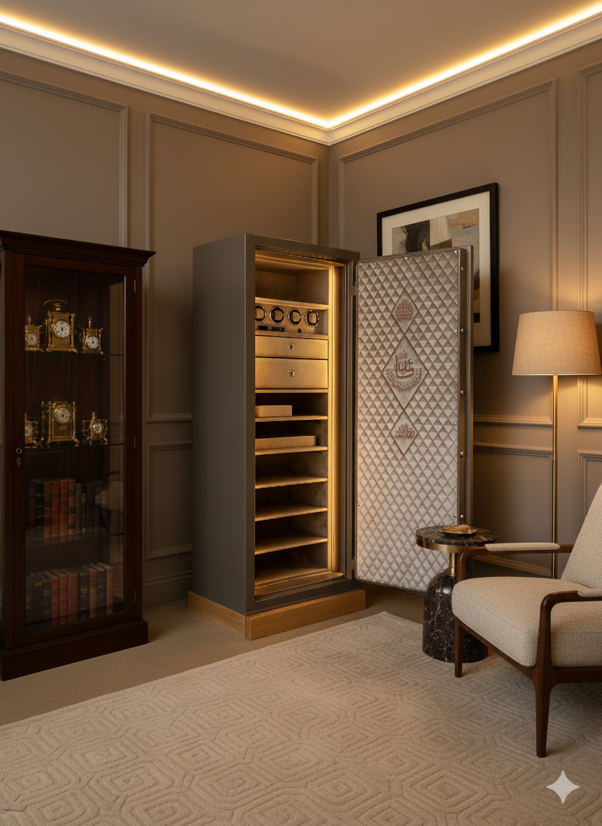The ultimate distinction lies in the detail. You guide every aspect of the final aesthetic, selecting your definitive exterior hue and the plush, functional interior. Our process includes presenting you with a precise 3D model for your approval before any forging begins. This allows you to finalize the seamless synergy of Absolute Access from German-made keys to secure digital interfaces, with the meticulous placement of watch winders and bespoke drawers.